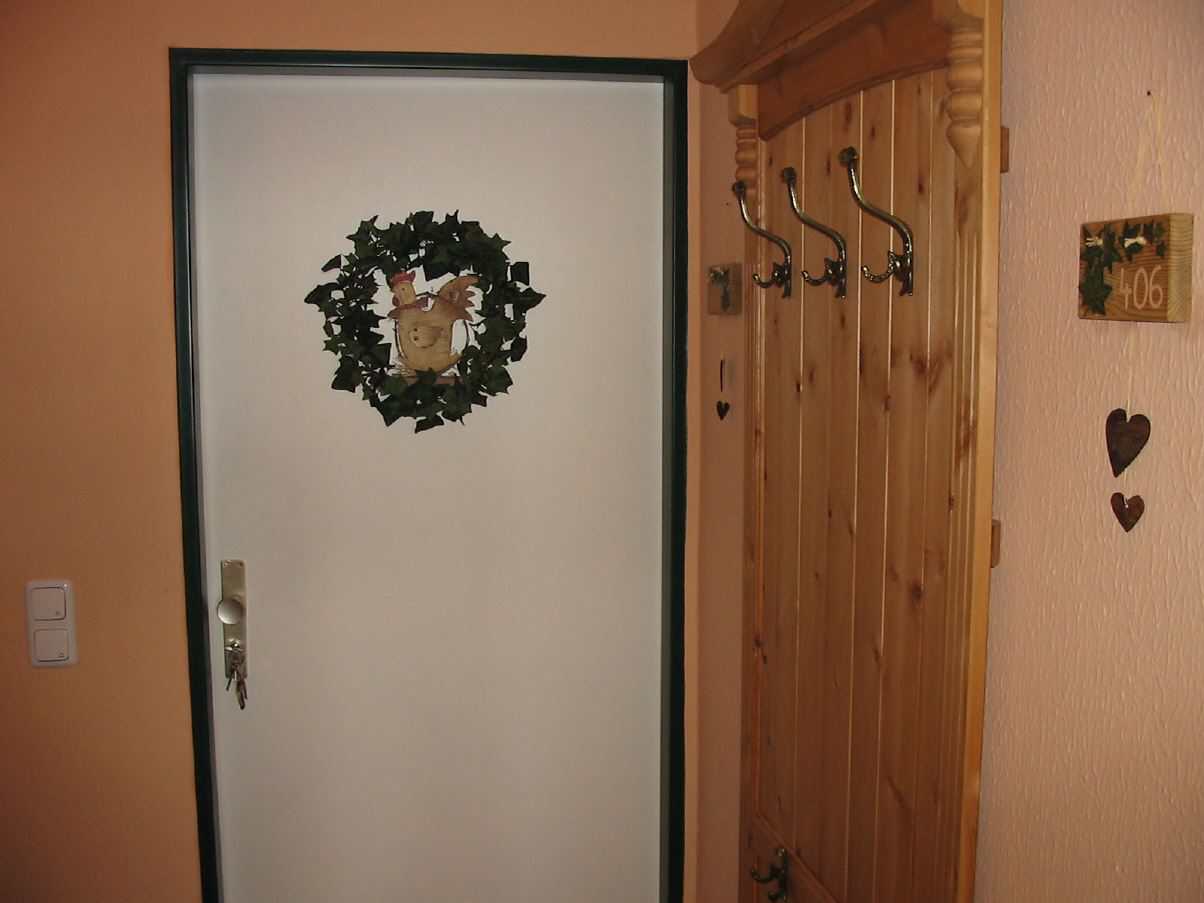 Die Wohnungen liegen direkt gegenüber und haben einen gemeinsamen Vorflur mit Garderobe und Schuhablagen.