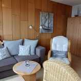 2 Schrankbetten, gemütliche Essecke, Sitzecke (Couch, Sessel und kleiner Tisch), beleuchtete Vitrine, eigenes WLAN, TV, Internet-Radio und herrlicher Panoramablick (Yachthafen, Burger Binnensee bis nach Burg und über die Felder, seitlicher Seeblick)