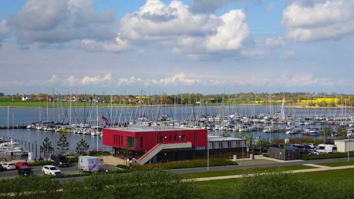 genießen Sie den herrlichen Panorama-Ausblick auf den Yachthafen, die Hafeneinfahrt (mit Segelbooten und Fischkuttern) und den Burger Binnensee. Immer wat to kieken...