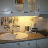 In der Küche ist von Kaffeemaschine, Kaffeepadmaschine, Wasserkocher, Eierkocher, Toaster und Thermoskanne bis zu Gewürzen, Geschirrspülmittel und Geschirrtüchern alles vorhanden.